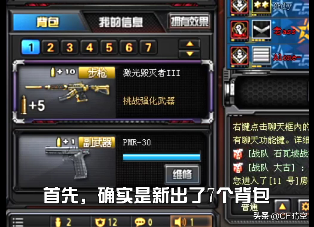 哈喽大家好我是你们熟悉的晴空啦!最近有小伙伴私聊晴空问新版本是不是出了七个背包?3.4.5背包是不是可以买永久了?晴空今天就来告诉大家吧。生化模式,人类模式分别背包即将出现!那么是出了七个新的背包,但是不是大家想的那样子而已。为什么呢?因为这个背包是为了方便玩家们不用每次更换模式去仓库换枪的,我相信...